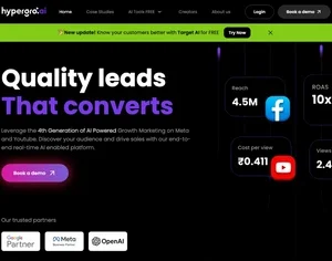 Hypergro is an AI-powered UGC video ads platform that helps businesses acquire new customers through targeted advertising. The platform offers a range of features, including real-time analytics and reporting, to help businesses track their campaigns' performance and optimize their ROI.