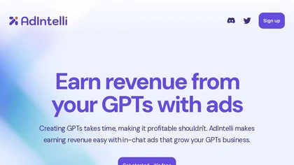 Adintelli is an AI tool that enables businesses to earn revenue through in-chat ads for their GPTs. It taps into global ad networks, maximizing impression value with AI-driven monetization. Adintelli offers no-code integration, personalized user experiences.