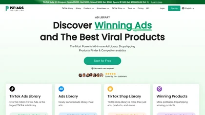 PIPIADS is a TikTok ad spy tool and e-commerce research platform with a 50M+ ad database for analyzing competitors, trends, and ad performance. It offers audience insights, cost estimates, conversion predictions, and team collaboration tools.